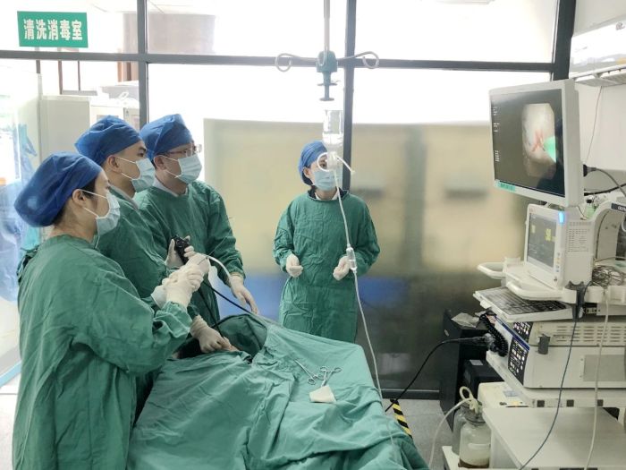 2021年4月,一名身患支气管结核的孕妇不远千里来到贵州航天医院求医,由于患者妊娠期间未能及时治疗,气管和右主支气管管壁出现软化、塌陷及狭窄,伴随严重的呼吸困难,无法平躺,这给她带来了极大的痛苦。经过充分评估,廖江荣带领团队在全麻硬质气管镜下紧急为患者实施了高频电刀、球囊扩张和硅酮支架植入等介入治疗,术后,患者喘鸣音消失,终于得以顺畅地呼吸,最终顺利诞下健康的宝宝。
