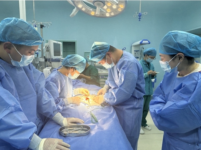 2022年10月13日22时,一例待产孕妇突然羊水破裂,随即听诊胎心异常,阴道检查见宫口开2cm,脐带脱出于阴道内,钟兆琴主任接到通知后,立即赶到产房,沉着冷静有序地指导抢救,助产人员将产妇采取头低足高位,托举胎头、堵住脐带,紧急送往急诊手术间。从发现脐带脱垂到胎儿娩出,仅耗时10分钟,伴随着新生儿响亮的啼哭声,钟主任悬着的心落下了。