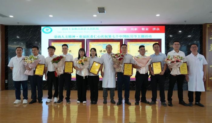 沿河县人民医院党政领导班子成员分别为退休干部代表、帮扶专家,以及为医院作出特殊贡献的医师代表颁发了感谢状并献礼;对2024年上半年病历书写优秀医师代表进行了表彰;举行了帮扶专家“师徒”结对拜师仪式;退休职工、帮扶专家、医师代表分别作了发言。