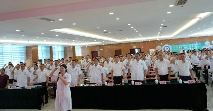 期间,全体参会医师还举行了庄严的宣誓仪式。誓言铿锵有力,展现了县人民医院医师们坚守职业操守、捍卫医学尊严的决心和信念。