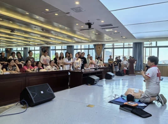 培训主要通过PPT讲解、现场展示、实际操作等方式开展。由培训老师向参训学员讲解了包括红十字运动与救护的基本知识、心肺复苏、创伤救护等初级应急救护的核心知识与技能以及常见急症、意外伤害、突发事件等处置要领。在实操考核环节,向参训学员发放一次性呼吸膜、三角巾、绷带等急救练习工具,通过“手把手”的教学模式,用人体模型和现场模特进行心肺复苏、气道异物梗阻、止血、包扎、固定、搬运等应急救护技能的实操练习。