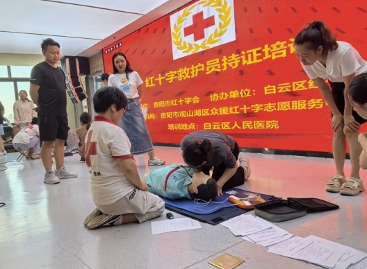 为强化落实《关于深化推进全省红十字应急救护工作的指导意见》中“三个一”行动计划,为全区每个街道、村居、社区配备一名或多名持证救护员,传播人道理念,掌握急救技能,教授急救知识,帮助群众开展伤害预防、紧急避险和自救互救,保障人民群众的身体健康和生命安全。8月20日,在贵阳市红十字会的支持下,贵阳市白云区红十字会举办2024年“一村(社区)一名持证救护员”培训班,共50人参训。