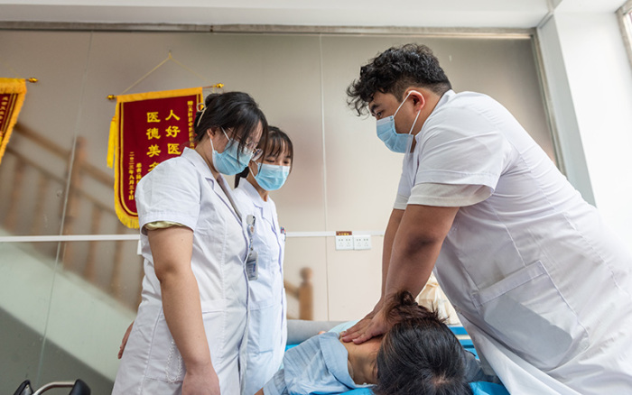 首页 > 新闻中心 > 卫生工作动态 > 正文 天柱县:“师带徒”传薪火 来源:贵州健康报 时间:2024-08-22 浏览次数: 2024年8月21日,天柱县中医院针灸门诊科,来自佛山禅城健翔中医专科医院的主治医师林春运,为“徒弟”示范运用推拿手法为患者治疗。近年来,天柱县借助东西部协作和省州帮扶的“东风”,不断加大人才培养和技术引进力度,采取“请进来”“送出去”的方式,为医护人员“充电蓄能”,支援医院通过“师带徒”模式,开展“一对一”“一对多”方式培育,帮助受援医院打造一支“带不走”的医疗团队。(本报通讯员 龚偕延)编 辑:石 磊二 审:文 叶三 审:高学军 分享到: