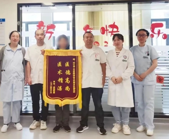 “非常感谢你们的精心的医治和陪护,折磨了我20多天的头痛终于好了。现在我的头不痛了,可以吃饭了,生活开始正常。”出院第二天,凌女士就带着锦旗到科室表达她的感激之情。