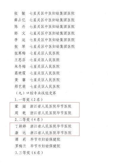 浙毕医院21人在毕节市“8·19中国医师节”岗位竞赛中获奖
