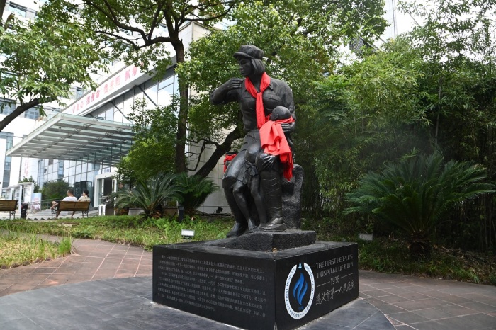 “80余年来,我们把红色基因根植于医院发展历程,把红军卫生员龙思泉的雕像从红军山复刻到医院,让一代代医务工作者铭记红色精神,创建了‘红城遵义·仁心一医’的党建品牌,以‘不忘入党初心、践行医者仁心、传承精诚匠心、就诊流程舒心、患者看病放心’为抓手,紧扣公立医院高质量发展新形势、新任务,全面提升医疗服务质量,全心全意守护革命老城人民的健康。”遵义市第一人民医院副院长谭小松说。
