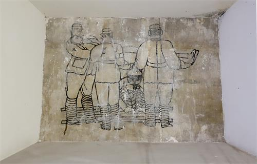 红军绘制的“包扎伤员”壁画。