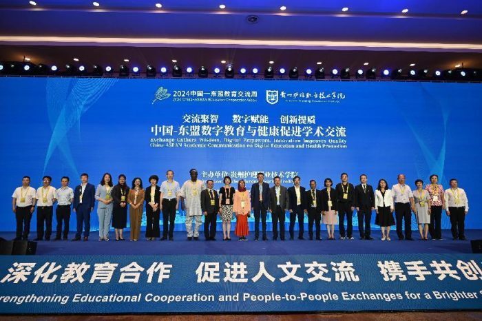 8月24日,2024中国-东盟数字教育与健康促进学术交流活动在中国-东盟教育交流周永久会址举行。贵州省教育厅、省卫生健康委、中国-东盟教育交流周秘书处和相关职能部门领导以及来自文莱、马来西亚、泰国、巴基斯坦、老挝、印度尼西亚、尼日利亚、越南、柬埔寨等11个国家和地区、国内34所兄弟院校、医养机构的相关负责人和专家,围绕“交流聚智 数字赋能 创新提质”的主题,通过主旨演讲、专题交流、虚拟仿真教育工作坊等活动,分享最新动态,交流成功经验,促进深入合作,共商中国—东盟数字教育与健康事业高质量发展。
