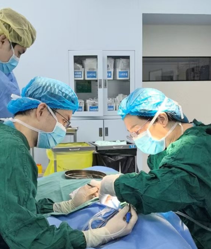 手术当天,天天在家人的陪伴下进入手术室。摆放体位、麻醉、消毒、铺巾,手术有条不紊地开始了。褚珺凭借精湛的手术技艺和丰富的临床经验,成功为天天施行了唇裂修复手术。