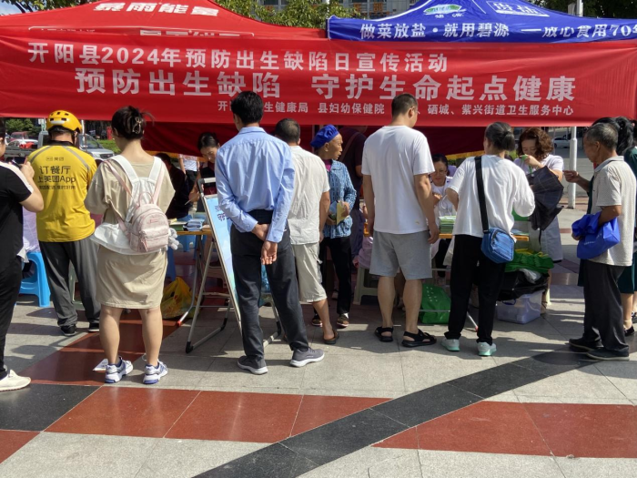 9月5日,开阳县卫健局组织县妇幼保健院、县人民医院、县中西医结合医院及3个街道社区卫生服务中心在云开广场开展预防出生缺陷主题宣传活动,引导适龄人群了解出生缺陷三级预防策略,学习掌握和正确运用防治知识,促进科学健康孕育。