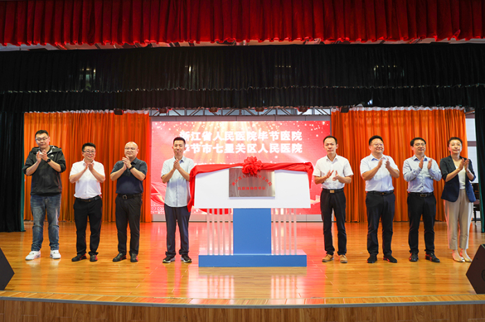 仪式上,张骏、覃东胜签署“医联体”单位协议,胡卫国、张骏共同为“浙江省人民医院毕节医院‘医联体’协作单位”揭牌。