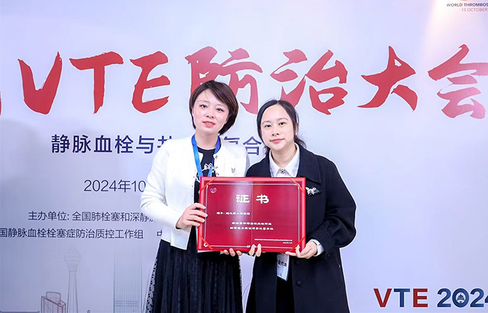 10月12日至13日,“2024年中国VTE防治大会”在北京盛大召开,公布了《全国VTE防治能力建设项目第十二批》的评审结果,德江县人民医院凭借VTE建设工作卓越表现,荣获肺栓塞和深静脉血栓形成防治能力建设项目优秀单位殊荣。护理部副主任卢翩翩、医务部邓旭到大会领奖。