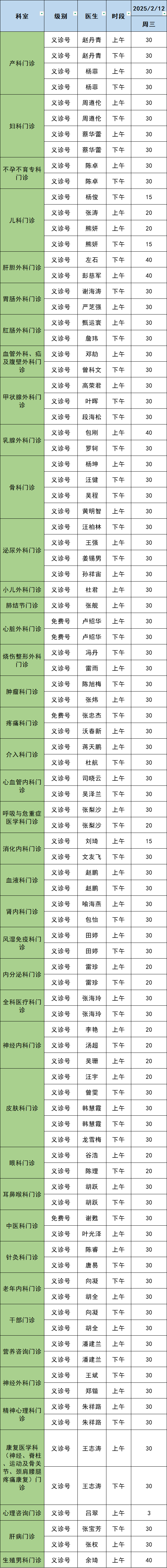 2月12日(周三)门诊开放日活动详情如下。