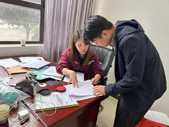 贵州大龙汇成新材料有限公司的车间里,“健康副厂长”杨璇正针对粉尘、噪声和有毒化学物等,组织人员实地评估工作场所的危害因素,开展隐患排查和整改工作,完善防护设施设备,避免职业病的发生。