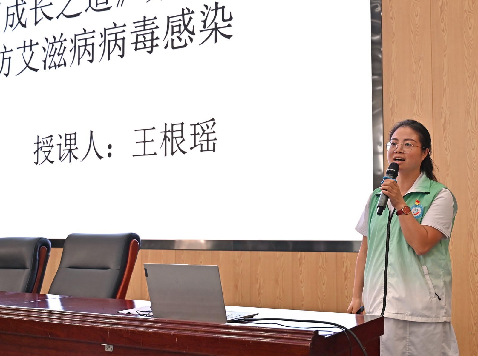在宣讲环节,县计生协会青春期健康教育老师王根瑶以《预防艾滋病毒感染》为主题展开专题授课,结合真实案例,用通俗生动的语言讲解了性病与艾滋病的传播途径、危害及预防措施,并通过互动问答引导学生主动思考。“原来艾滋病的传播途径有这么多细节需要注意,这堂课让我学会了如何在日常生活中保护自己。”幼儿保育专业的小罗(化名)同学在课后说道。