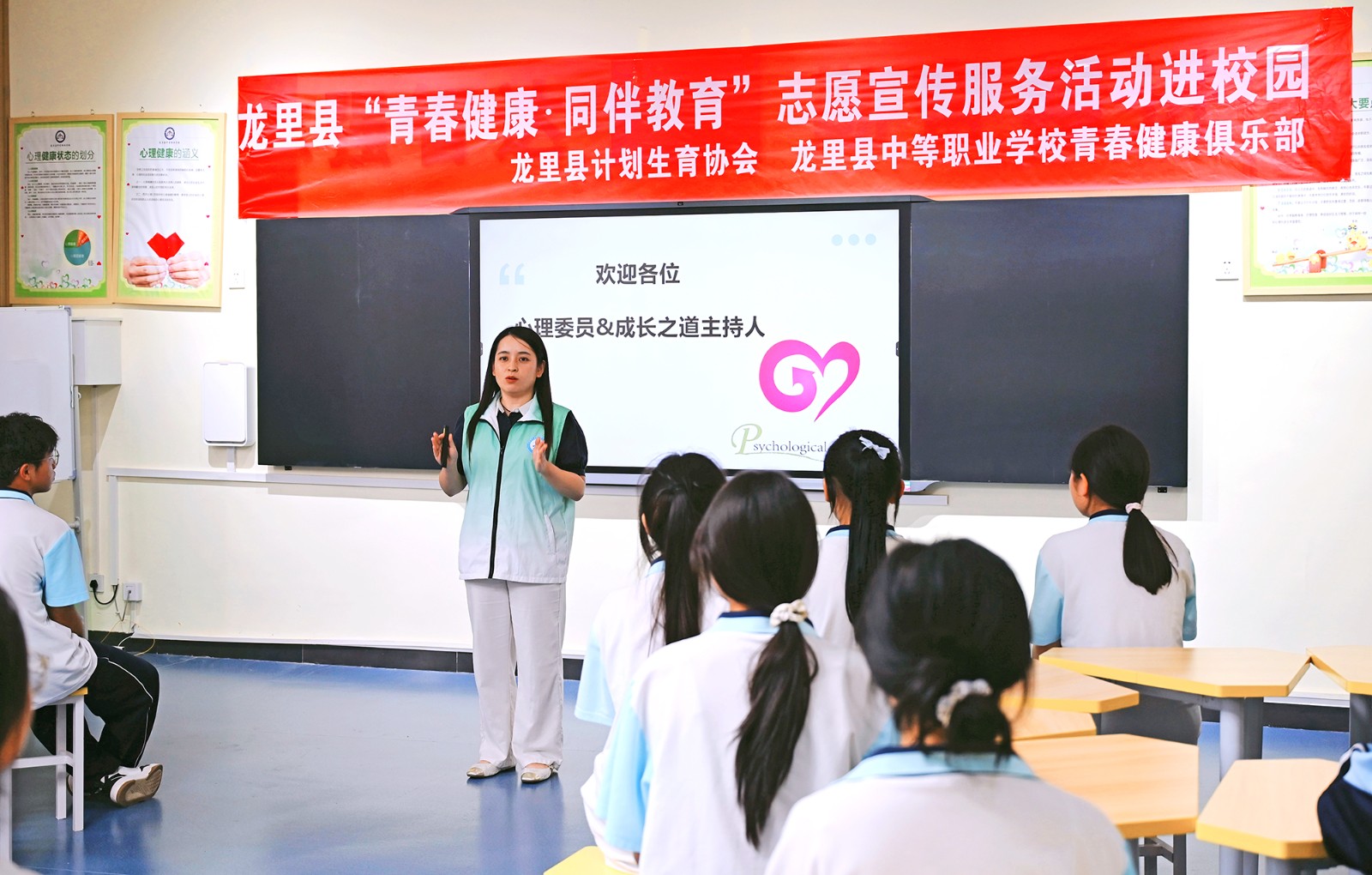 值得一提的是,依托龙里县中等职业学校青春健康俱乐部,活动还同步开展了“青春健康·同伴教育”志愿宣传服务。学校遴选各班级心理委员组成同伴教育小组,通过社团活动形式开展心理健康互助实践。“中职学生多来自离异、单亲等家庭,在人际适应、未来规划方面更需要引导。”学校教学培训中心主任孙贵明介绍,自今年6月青春健康俱乐部建成以来,县计生协不仅提供了团辅设备等物资支持,还通过同伴教育、成长之道系列活动,帮助学生树立正确三观。“心理委员能及时发现同学中的情绪波动、人际矛盾等问题,实现早干预、早疏导,有效预防校园危机事件。”